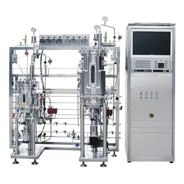 • Automatyczny system sterowania: wyposażony w wielokanałowy system sterowania PLC, obsługujący monitorowanie w czasie rzeczywistym i sterowanie w pętli zamkniętej temperaturą, przepływem gazu, pH, DO, uzupełnianiem, ciśnieniem w zbiorniku i innymi parametrami, może być zadokowany w systemie SCADA w celu realizacji zdalnej obsługi i śledzenia danych.